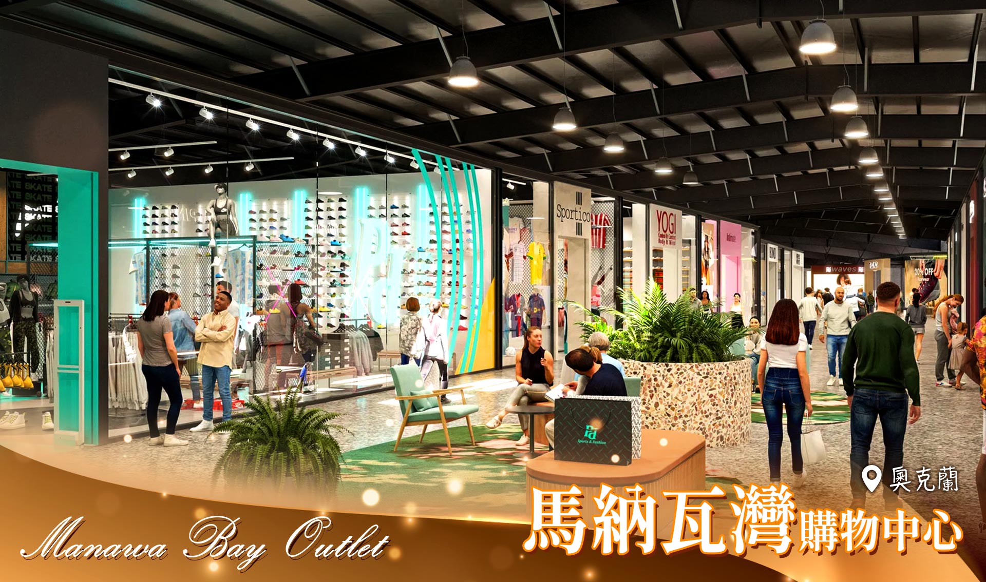 【馬納瓦灣購物中心(MANAWA BAY OUTLET ) 】購物中心擁有近100 家商店,包括本地和國際品牌。其中 20 多家將是國際連鎖品牌在紐西蘭開設的第一家門店,例如 Lindt、Ariat、Hoka、Guess 和 Timeless Watches,還有一些其他品牌是首次在紐西蘭開設奧特萊斯店,例如 Kate Spade、Michael Kors 和 Swarovski。