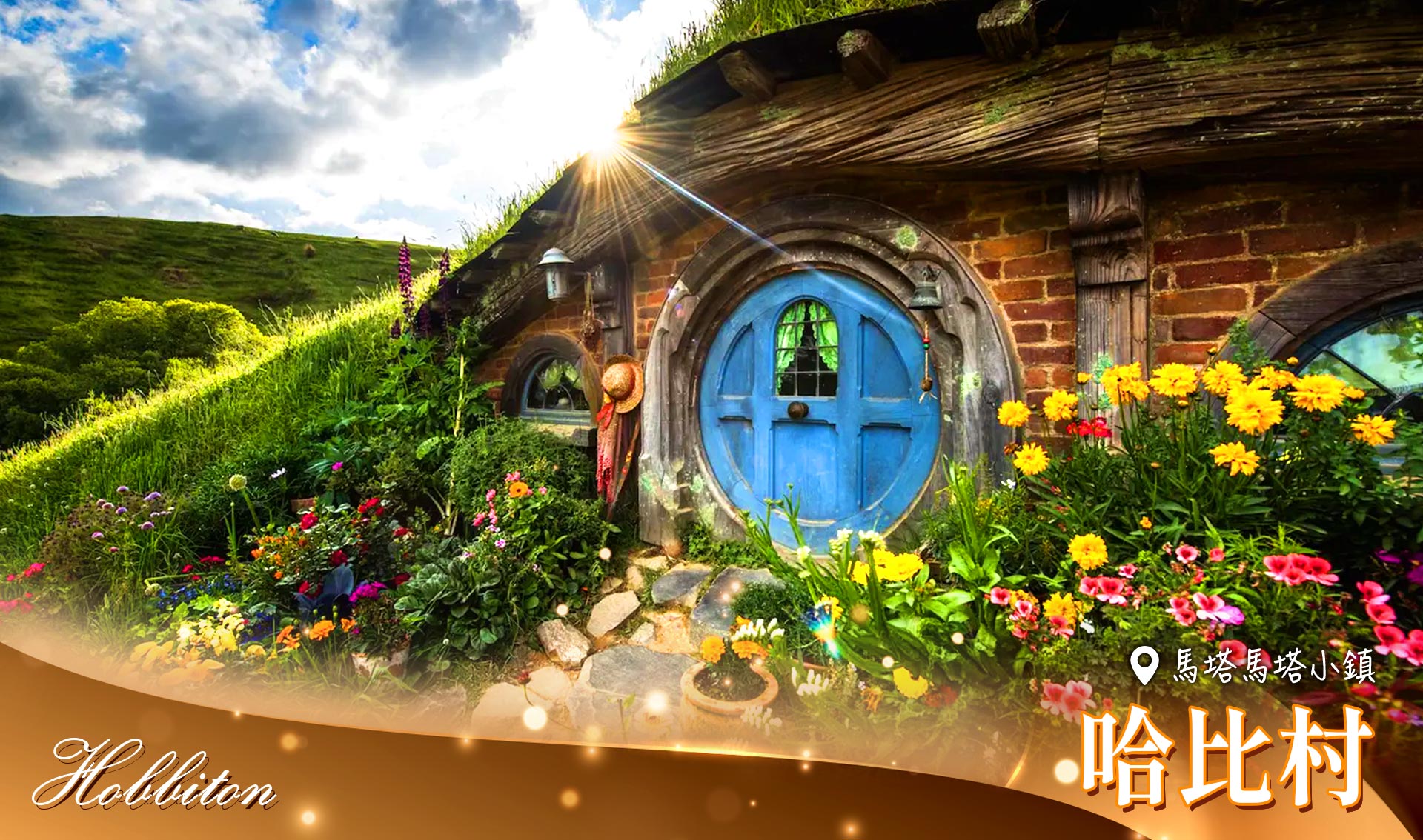 電影《魔戒》裡面哈比人所居住的村落,裡面場景保留當初電影中的景象,讓您在其中有無限的想像畫面。