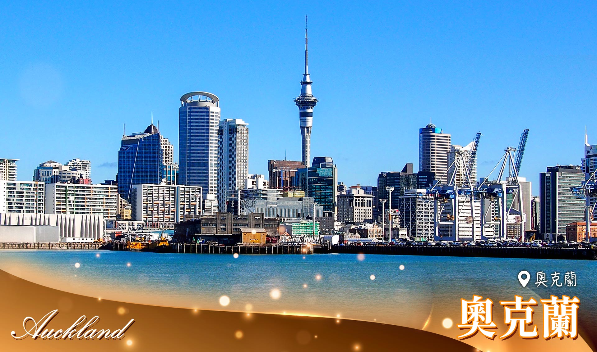 【奧克蘭】位於紐西蘭北島的西北岸,為全紐西蘭的工商業中心和第一大城,也是往來世界各國的大門,奧克蘭人口約130萬。雖然奧克蘭是紐西蘭最大的城市,但試著不要把它看成是一個城市,它一半是都會,另一半是海景 – 奧克蘭是一座包裹著神奇海洋世界的現代都市,海上散佈五十多座島嶼,每個島嶼都有不同的特色。城市環繞著懷特瑪塔港(Waitemata Harbour)和豪拉基灣(Hauraki Gulf)兩岸建設,港灣優良,也因此造就了紐西蘭海岸都市的獨特風格。