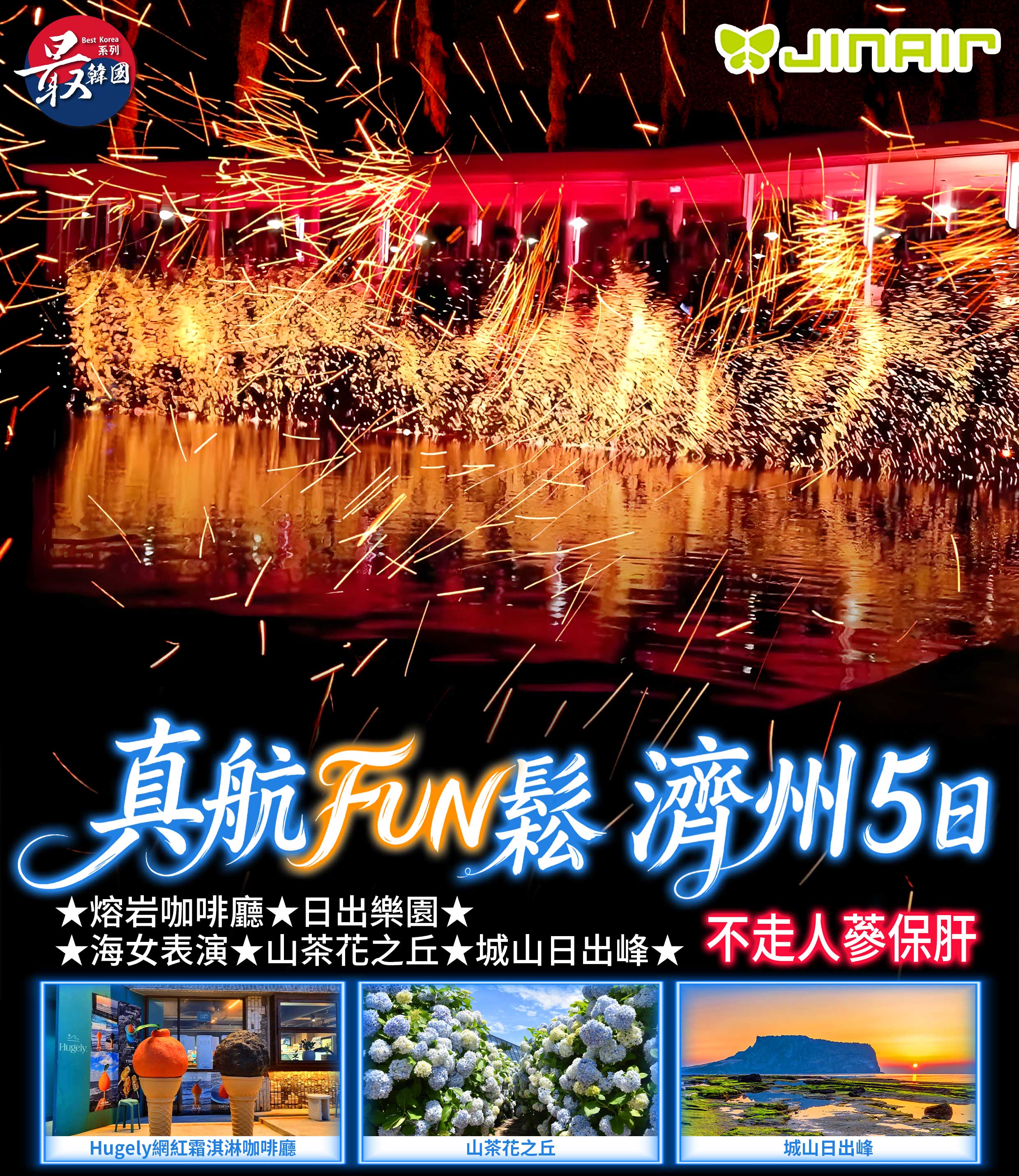 【真航FUN鬆濟州】熔岩咖啡廳.日出樂園.海女表演.山茶花之丘.城山日出峰.5日(不走人蔘保肝)